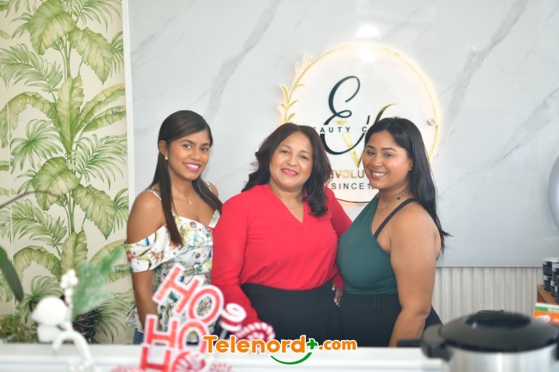 San Francisco de Macorís.- El sábado 6 de diciembre Evolution Beauty Center dio bienvenida a la temporada navideña, con su personal encabezado por Evelyn Parra, obsequiaron regalos, sorpresas y brindis a sus clientes durante todo el día.