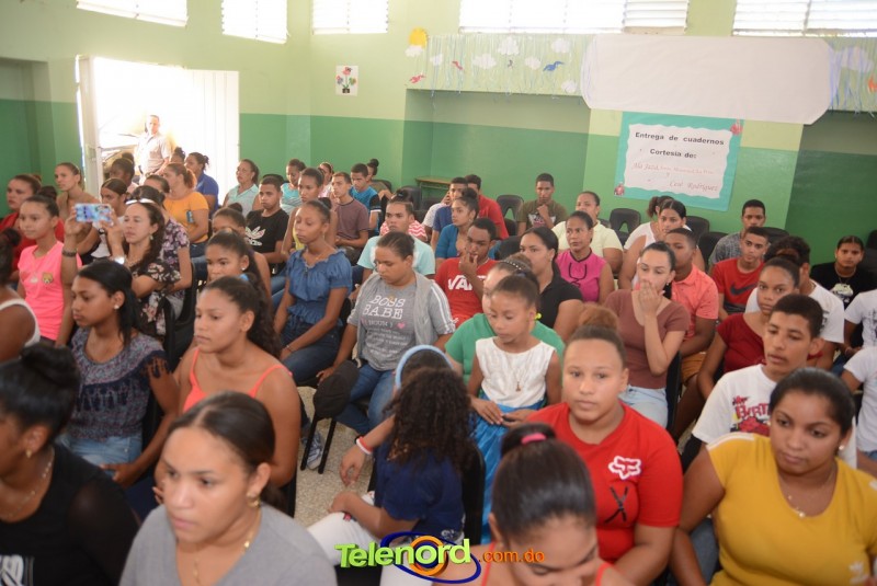 San Francisco de Macorís.- El artista Ala Jaza y su manejador Porfirio Rodríguez (Sexce) realizaron el miércoles 14 de agosto, la entrega de cuadernos a niños y niñas del Distrito Municipal De La Peña.