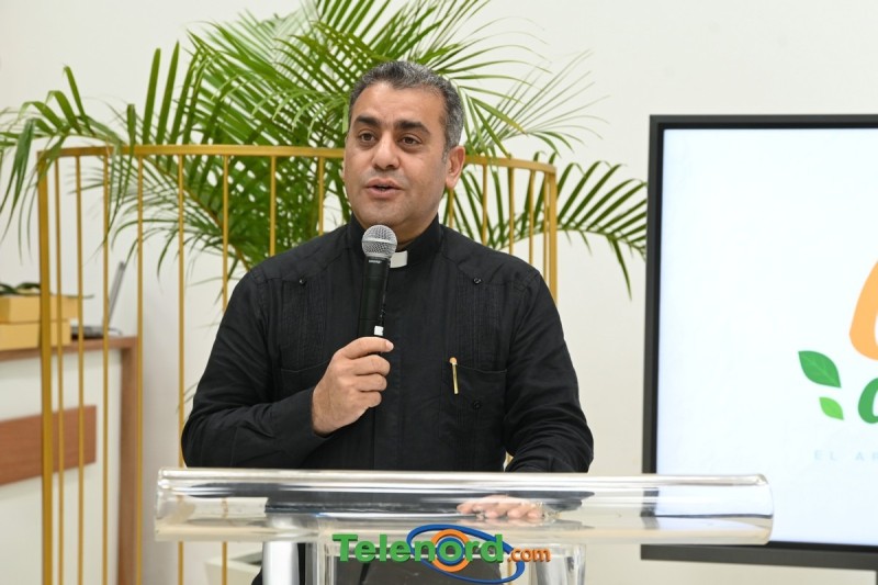 En el acto de apertura, el rector de la UCNE, reverendo padre doctor Isaac García de la Cruz, realizo oración, momento que aprovecho para felicitar a los estudiantes, por el esfuerzo en el montaje del evento.