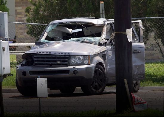 “Lo que vemos en el video es que un Range Rover pasó el semáforo que estaba a unos cien pies de distancia (30 metros) y golpeó a las personas que estaban sentadas en la parada de autobús”, indicó Maldonado.