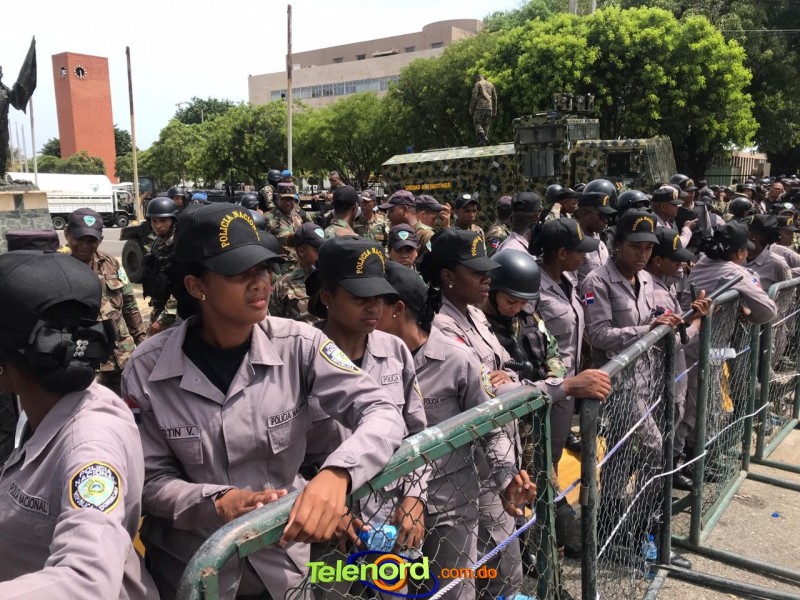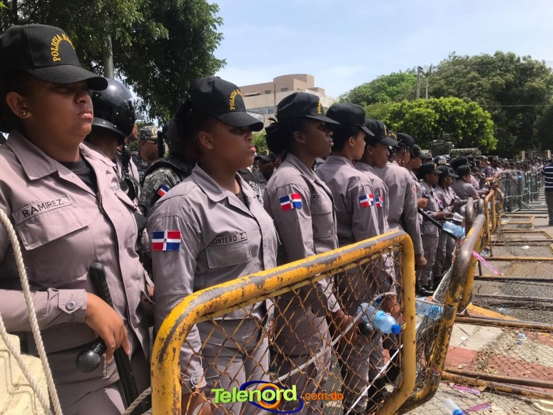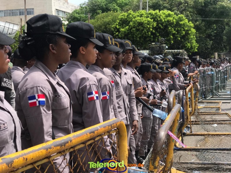 San Francisco De Macorís.- Más de 1800 agentes de la Policía Nacional y 700 militares están apostados en las afueras del Congreso Nacional en Santo Domingo, nte el presunto proyecto de ley de reforma a la constitución.