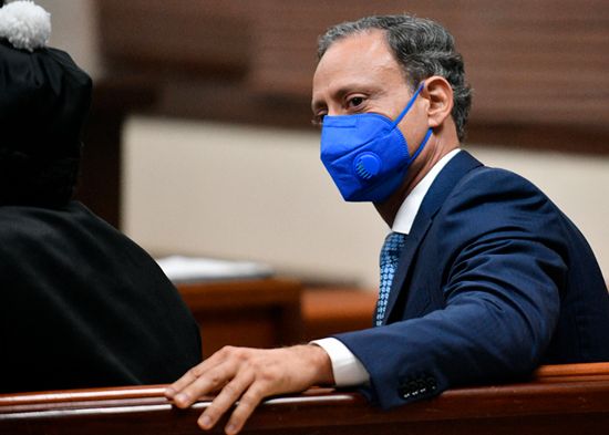 En fila y esposados fueron trasladados cerca de 18 implicados en la operación Falcón, entre ellos la comunicadora Dianabel Gómez, al Palacio de Justicia de Santiago