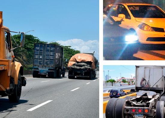 Conducir sin luces frontales o traseras, uso indebido del carril izquierdo con vehículos pesados y rodamiento de unidades con gomas desgastadas, constituyen las tres infracciones de tránsito más cometidas y sancionadas en el país desde enero de 2019 a esta fecha de 2020, según consta en un registro de 96,409 casos de violaciones compilados por las autoridades.