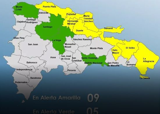 Santo Domingo.- El Centro de Operaciones de Emergencias (COE), informó este jueves que de acuerdo al boletín meteorológico del Instituto Dominicano de Meteorología (INDOMET), se aumentan los niveles de alerta amarilla para nueve provincias por la incidencia de una vaguada en varios niveles de la troposfera.