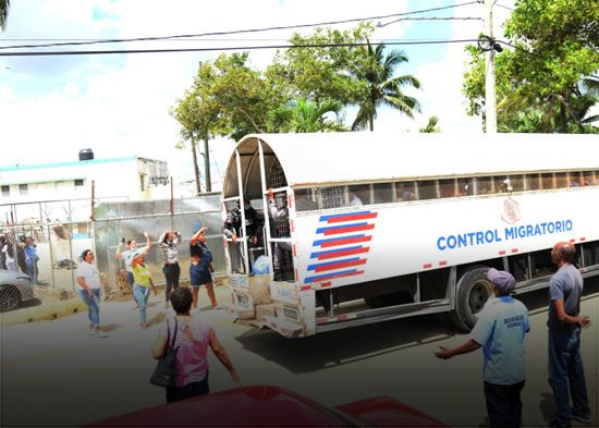 Tres camiones de cama larga, cubiertos con verjas metálicas a sus lados y con techo ovalado en el mismo material, pertenecientes a la Dirección General de Migración, salieron alrededor de las 12:00 del mediodía de este lunes completamente repletos de reclusos que cumplían distintas condenas en la Penitenciaría Nacional de La Victoria.