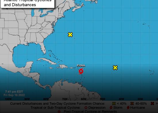 El Centro Nacional de Huracanes emitió un informe la noche de este viernes en el que afirma que las fuertes lluvias de Fiona llegarán a las Islas de Sotavento la noche de este viernes, extendiéndose a las Islas Vírgenes Británicas y de los Estados Unidos y Puerto Rico el sábado, llegando sus primeros efectos a la República Dominicana el domingo.