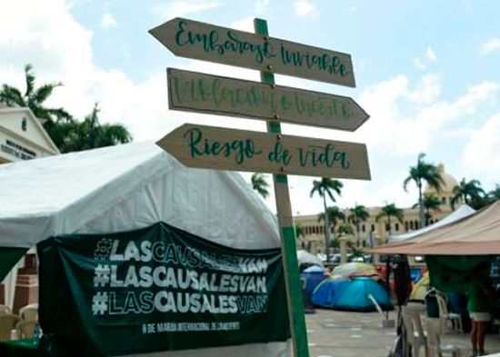 Mientras un grupo de mujeres se encuentran acampando desde hace más dos semanas en los alrededores del Palacio Nacional en demanda de que en la modificación al Código Penal se exima de responsabilidad penal cuando una mujer se le practique un aborto si su vida está en riesgo, el feto tiene una malformación congénita incompatible con la vida o que el embarazo sea fruto de una violación o incesto, varias organizaciones de la sociedad civil realizan caravanas en Santo Domingo y otras provincias en rechazo a que esto ocurra.