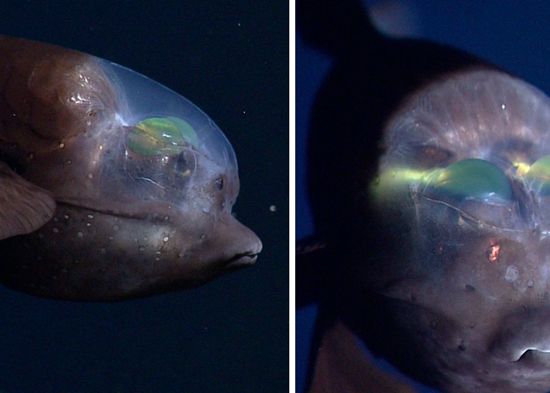 Un equipo del Instituto de Investigación Acuario de la Bahía de Monterey (MBARI, por sus siglas en inglés) ha captado un extraño pez de cabeza transparente y ojos tubulare, en aguas profundas la costa pacífica de EE.UU.