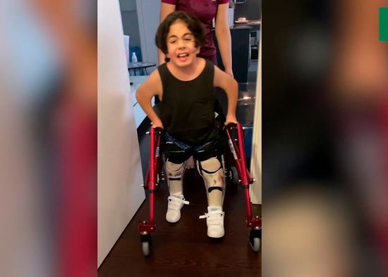 Derek Hugo, el niño viral de redes, ya está caminando
