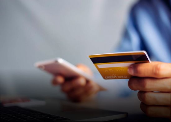 Mano sostiene una tarjeta bancaria