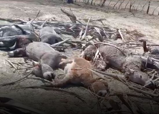 Domingo Saviñón, capataz del proyecto, interpuso un acta de denuncia contra Bolívar Echavarría donde se establece que en fecha no específica mató a los animales y posteriormente los tapó con pencas y cana y trato de quemarlos.
