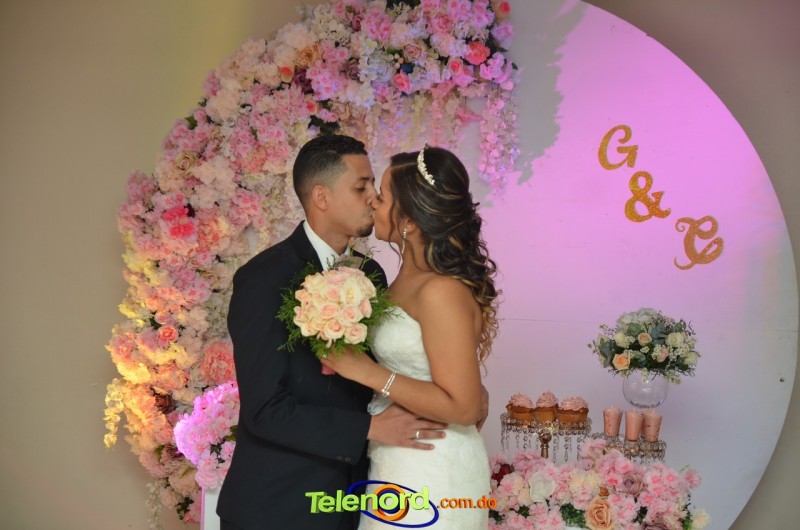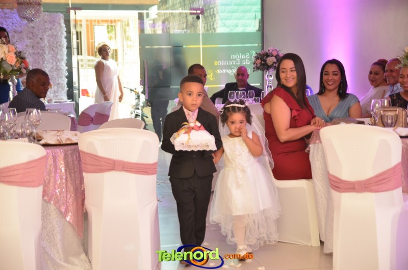 La feliz pareja celebró su unión como marido y mujer, ante la presencia de algunos de sus familiares y amigos, en la celebración realizada en el salón de eventos de la Casa de novias Mayra.