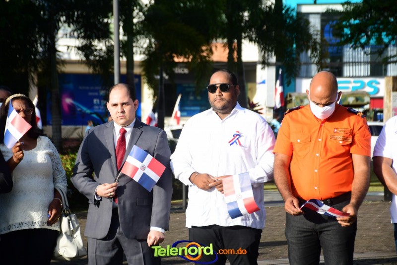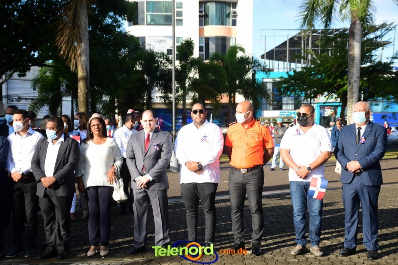 Los actos iniciaron con el enhestamiento de la Bandera Nacional, y la interpretación del Himno Nacional frente al Parque Duarte, encabezada por la vicealcaldesa Tinita Gonzalez, los miembros de la Sala Capitular, y los miembros de las direcciones municipales, provinciales y regionales de las distintas instituciones del estado.