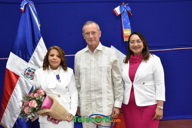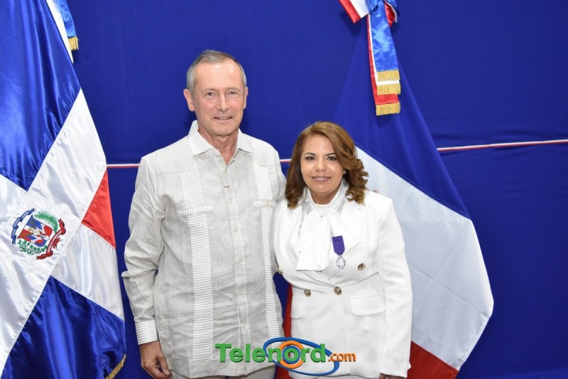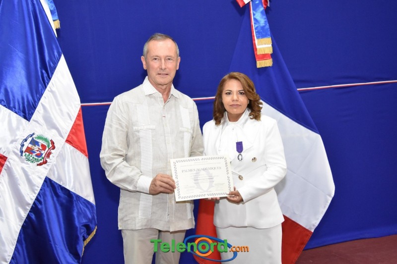 San Francisco de Macorís.- El embajador de Francia en la República Dominicana, Eric Founier otorgó el miércoles 15 de marzo, la Condecoración “Palma Académica”, a la Técnico Regional de Lenguas Extranjeras Andrea Ulerio.