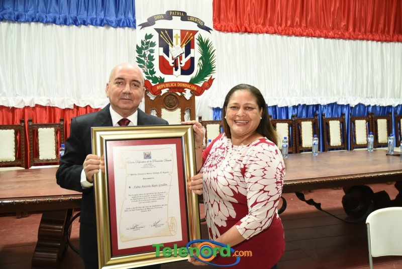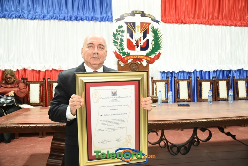 Otro de los reconocidos fue el gran propulsor Fabio Rojas Grullón quién además se desempeña como Gerente General de Los Indios de San Francisco en la Súper Liga LNB y que su hoja de vida fue leída por Angélica Cruz directiva de la UDEPRODU y Presidenta de la Academia de Softbol Femenino Las Flores y finamente fue reconocido con el Mérito Olímpico Víctor Vélez un ejemplo como jugador, entrenador y técnico en la disciplina de Voleibol y cuya biografía la realizó el maestro y Presidente de la Asociación de Voleibol provincial José Augusto Morel quién destacó ampliamente los dotes de Víctor que lo hicieron merecedor del reconocimiento.