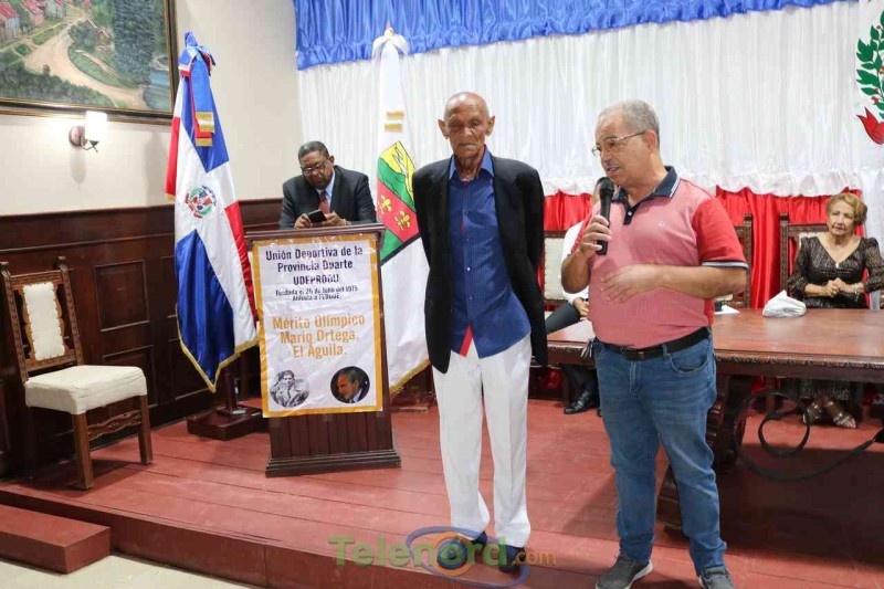 San Francisco De Macorís.- La Unión Deportiva (UDEPRODU) y la Asociación de Softbol de la Provincia Duarte (ASOPRODU) reconocieron la hoja de vida de Pedro Arnaud "Pidoca" en un acto realizado en el Salón de actos del Ayuntamiento Municipal, entregándole de manera especial, el Mérito Olímpico Mario Ortega "El Águila".