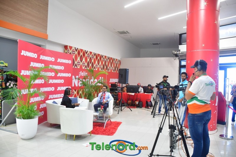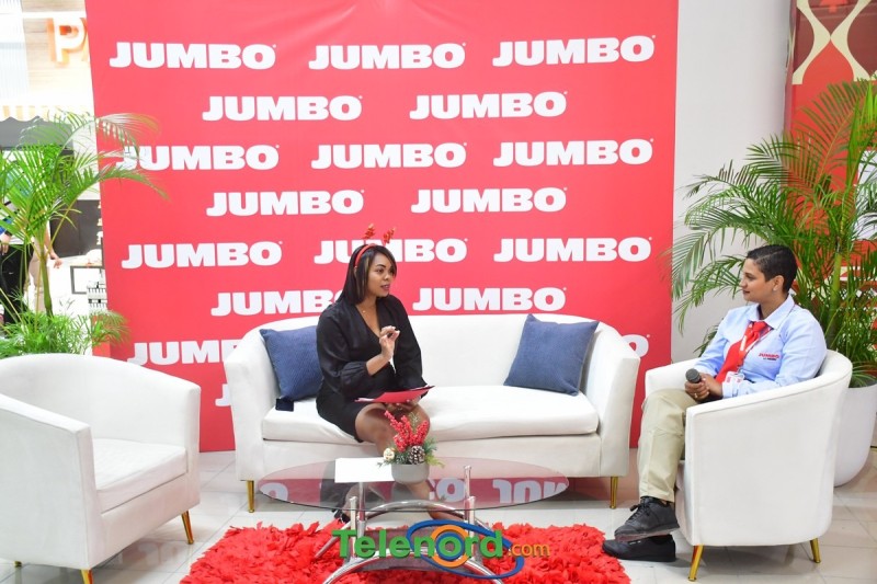 La presentadora Johanny Paulino junto a todo un equipo de Telenord se instaló en la nueva tienda de Jumbo, en compañía de Arismendy Lantigua habló con los primeros clientes que acudieron a conocer la experiencia Jumbo de compras.