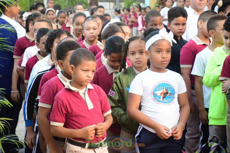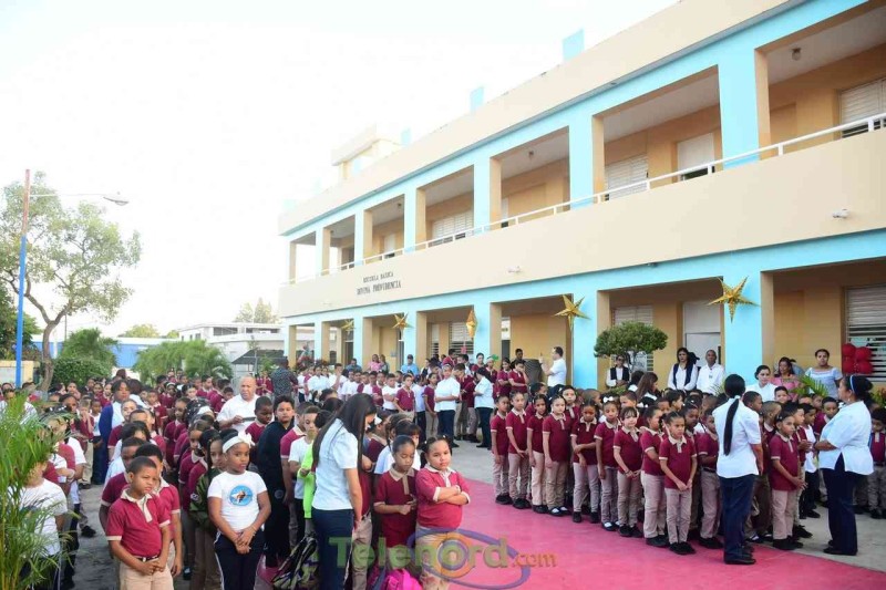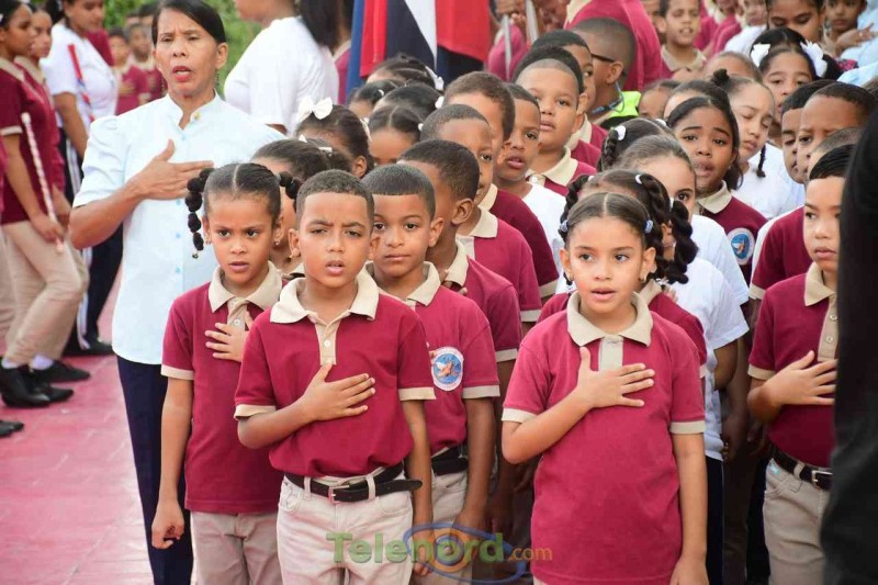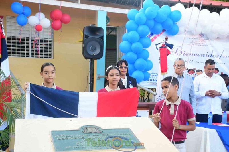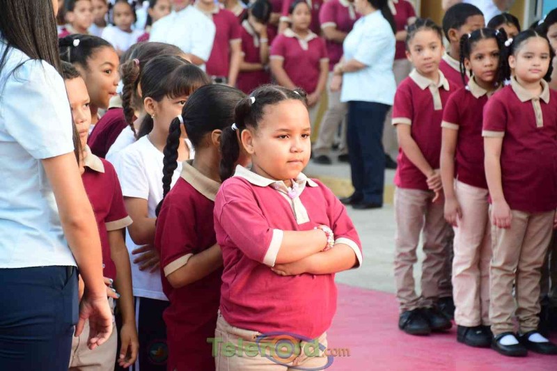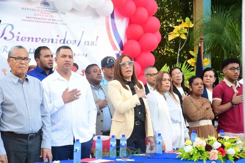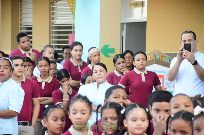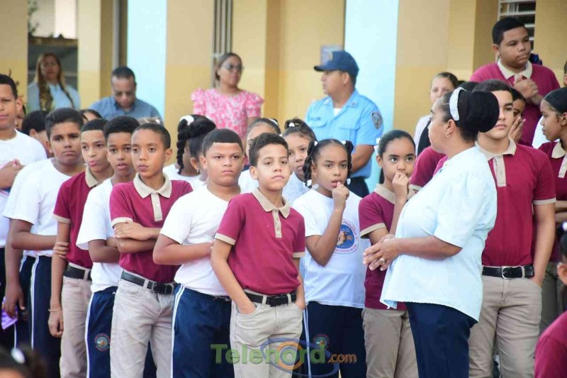 San Francisco de Macorís.- La directora, Berenice castellanos, junto a personal técnico docente y administrativo, realizan acto de reapertura del año escolar 2023-2024, luego del feriado de navidad y año nuevo, como medida dispuesta por el Ministerio de Educación.