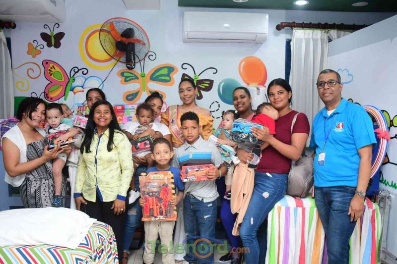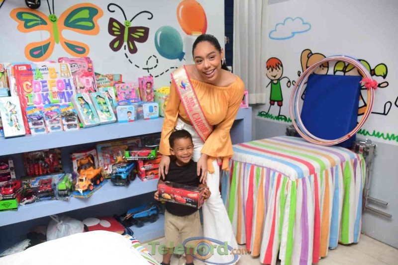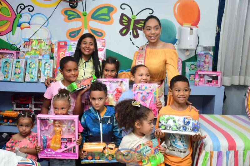 Cerca de 100 infantes recibieron coloridos, educativos y recreativos juguetes de la mano de Angela Sánchez, asistente de Albertina González; vice alcaldesa de San Francisco de Macorís y la Teen Universe Caribbean Island; Gabriela Then.