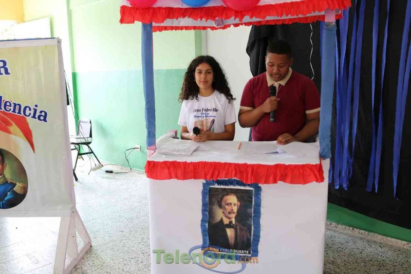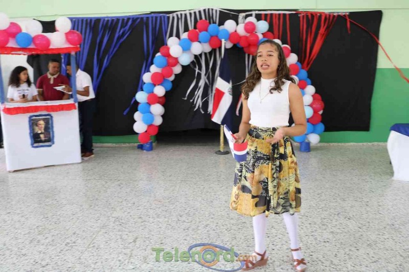 Las actividades se iniciaron con el izamiento de la bandera nacional , desfile estudiantil por algunas calles cercanas al centro educativo con cantos a la patria. Ya en el salón de actos, el Párroco de la comunidad realizó la invocación al Altísimo y luego hubo una presentación inicial con el himno a Duarte e inmediatamente el profesor José Domingo Rodríguez ofreció las palabras de bienvenida agradeciendo la presencia de personalidades y la disciplina e integración de estudiantes y profesores para la realización de estas actividades donde todas fueron realizadas por el área de Ciencias Sociales que integran además del profesor Rodríguez , Grislenny Sosa y Miguel Vargas.