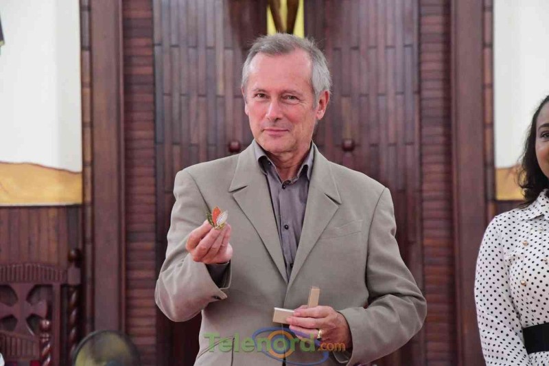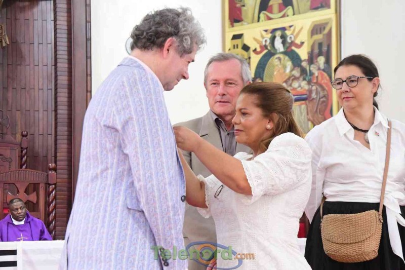 En ese sentido, la Técnico Regional de Lenguas Extranjeras y coordinadora de la misa, Andrea Ulerio, distinguió con la colocación de un pin a Veyne Brigitte, Consejera de Acción Cultural de la Embajada de Francia, al señor Brunet, ciudadano destacado de Francia y al embajador, a este último además de una placa con los proyectos y programas.