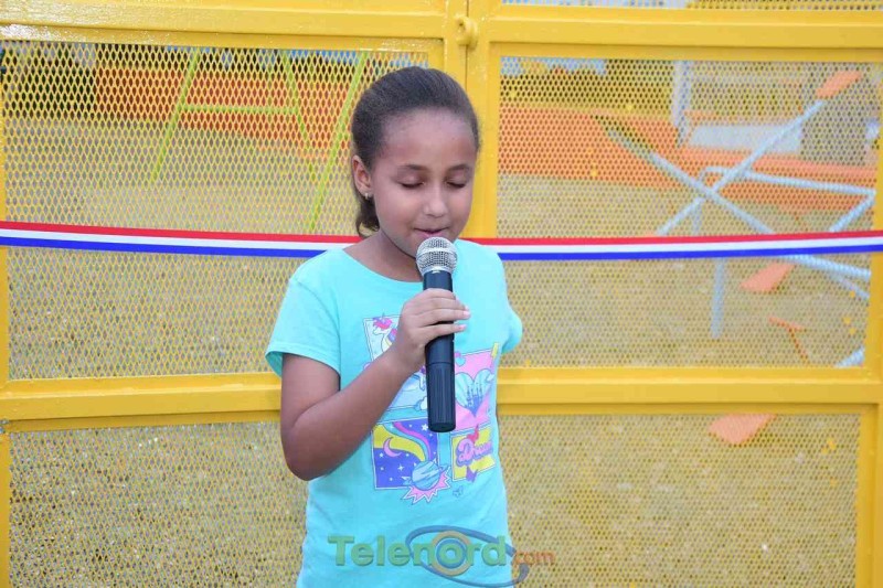La bendición del remozado parque infantil la realizó la Codianita Saraí López de Jesús, hija de la Ing. Isaira de Jesús.