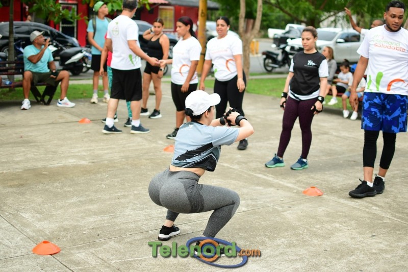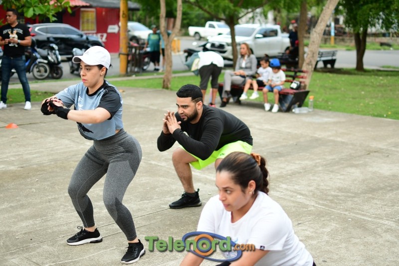 El entrenamiento deportivo tuvo lugar en el parque de la Villa Olímpica, coordinación con la Fundación Vive Saludable y el popular entrenador Reymond Fitt 56, donde se realizaron ejercicios de fuerza, resistencia y zumba.