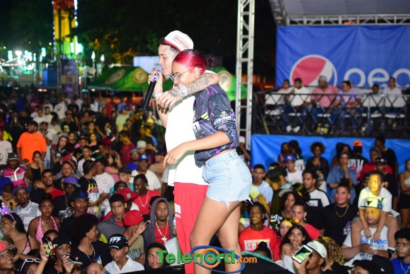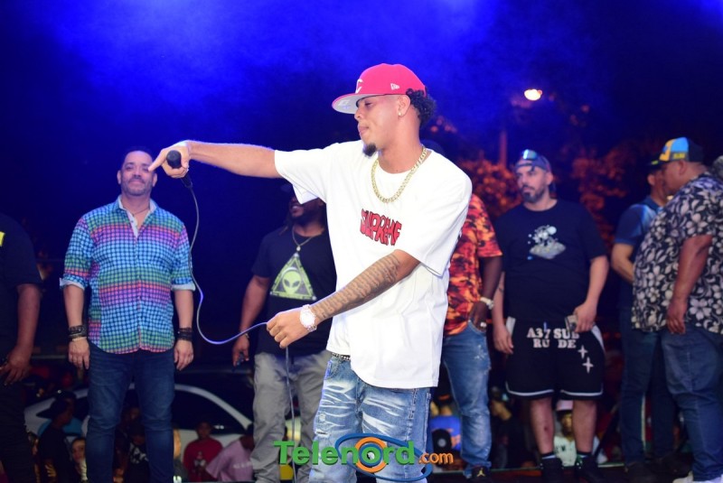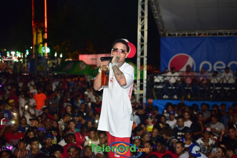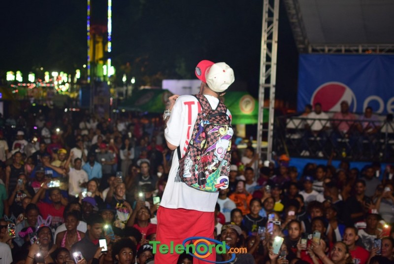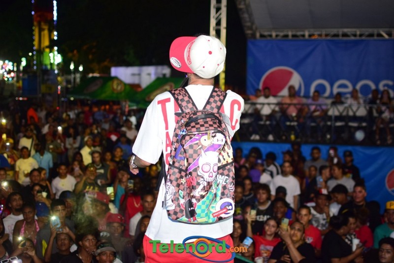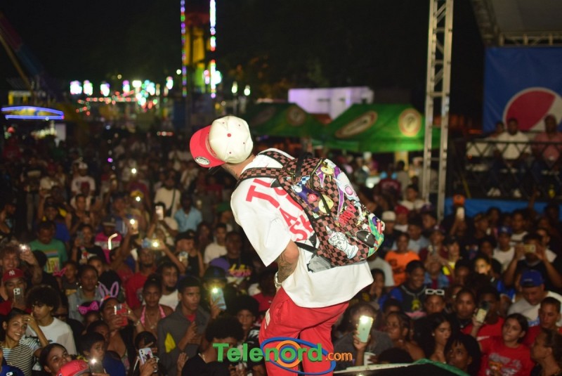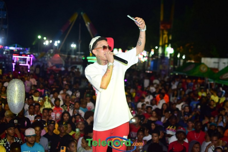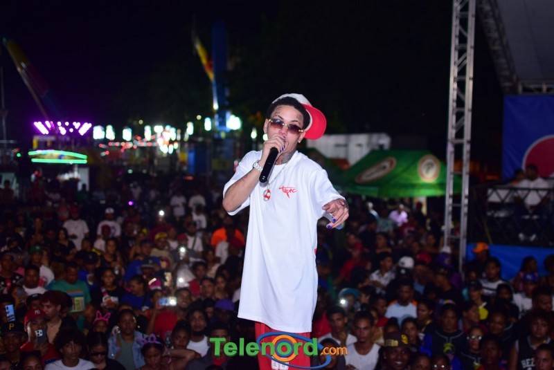 Onguito le brindó su repertorio en la música urbana, a los cientos de personas que asistieron al parqueo del Complejo Deportivo Juan Pablo Duarte, en el desarrollo de estas fiestas patronales 2024.