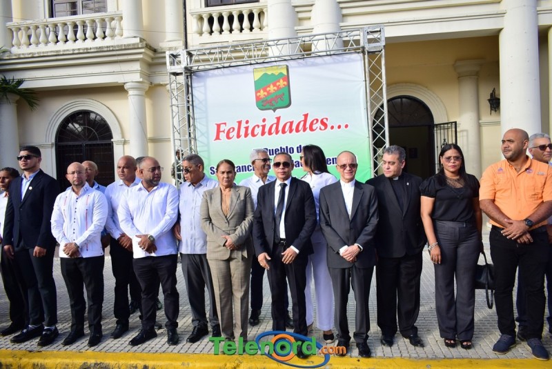 Los actos iniciaron con la interpretación del himno nacional e izamiento de la bandera, frente al Palacio Municipal, con la presencia del alcalde municipal Alex Diaz, la gobernadora civil y provincial de Duarte Xiomara Cortés, y los miembros de la sala capitular.