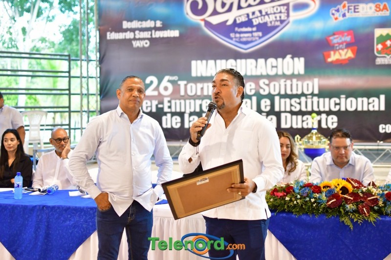 San Francisco De Macorís.- Con una gran asistencia de la familia del Softbol fue inaugurado el 26avo torneo de Softbol dedicado al Lic Eduardo Sanz Lovatón, director general de aduanas en el multiuso de la ciudad ganadera con una concurrida asistencia.