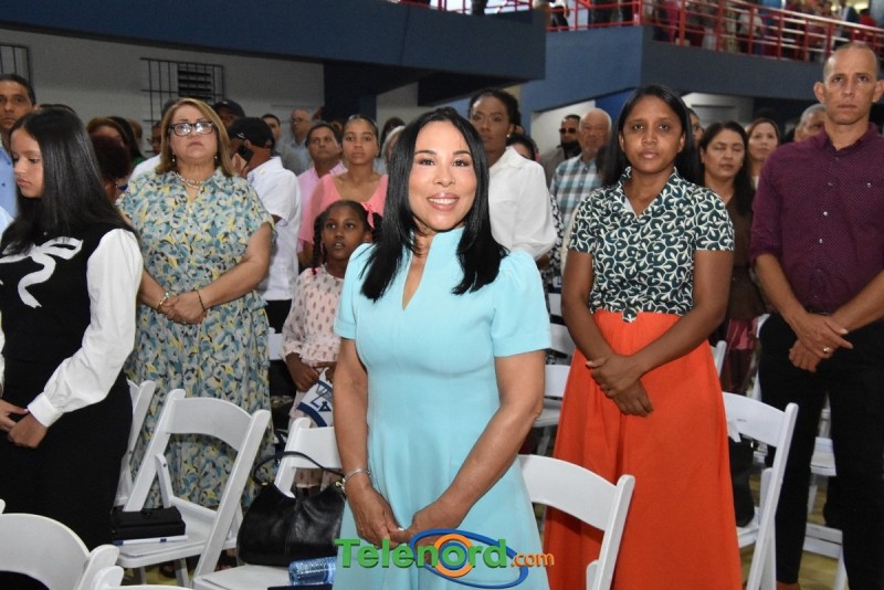 La ceremonia inició con el desfile de autoridades académicas, encabezadas por la directora de Registro, licenciada Karina Acosta, acompañadas de los abanderados del Colegio Católico Nordestano Pedro Francisco Bonó.