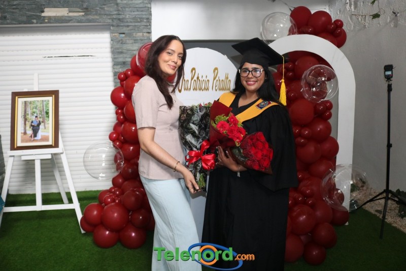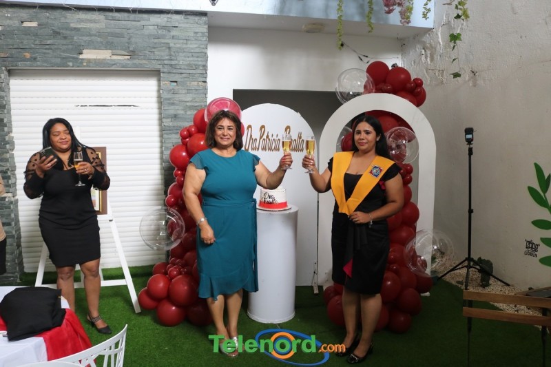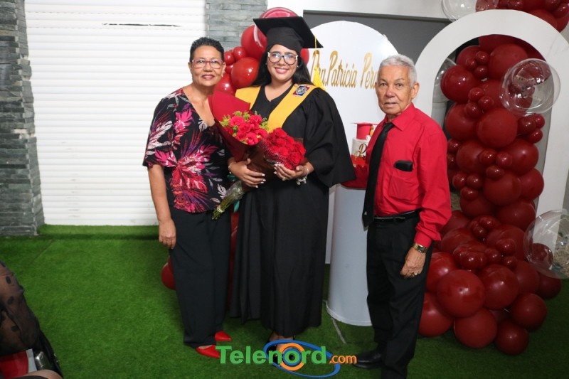 Patricia celebró en un ambiente de mucha alegría y felicidad, la obtención de su título, tras investida en la ceremonia realizada por la Universidad Católica Nordestana (UCNE), en compañía de su madre Fatima Roque, familiares y amigos.