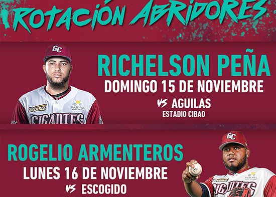 San Francisco de Macorís. – El dirigente Luis Urueta anunció al lanzador derecho Richelson Peña como su abridor para el primer partido de la temporada el próximo domingo en Santiago, cuando los Gigantes visiten a Águilas.