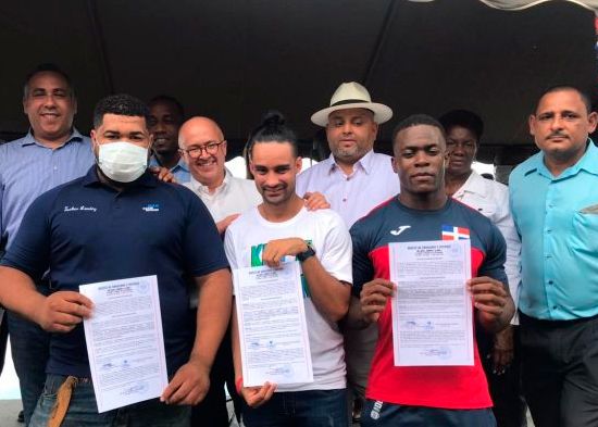 El alcalde Manuel Pantalio, entregó este miércoles dos títulos de propiedad de terreno a los atletas del municipio de Bayaguana Luguelin Santos y Zacarías Bonnat, ganadores de medallas de plata en los Juegos Olímpicos Tokio-2020.