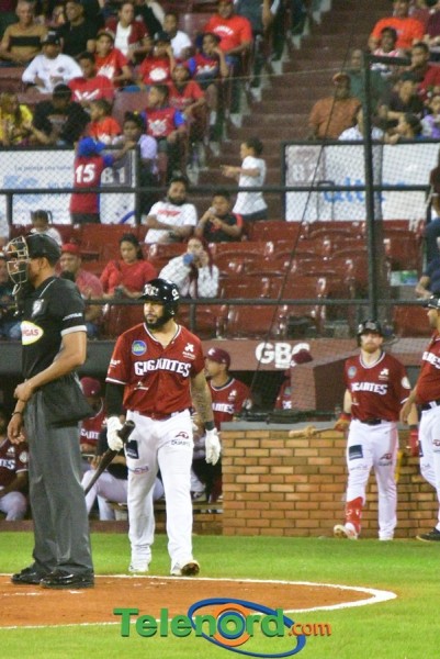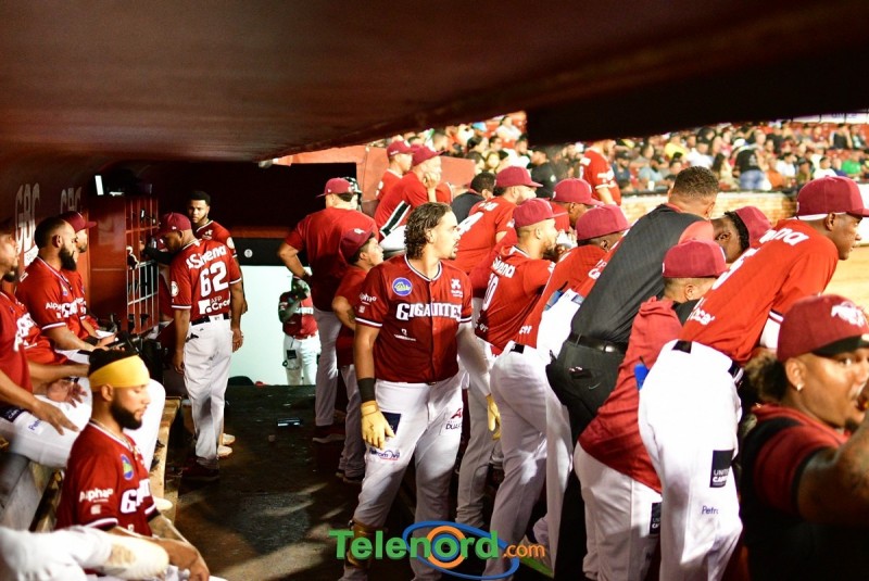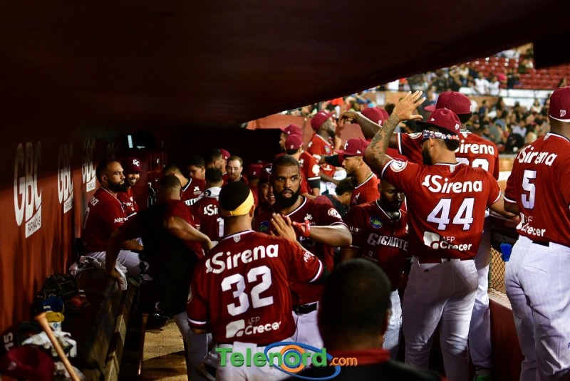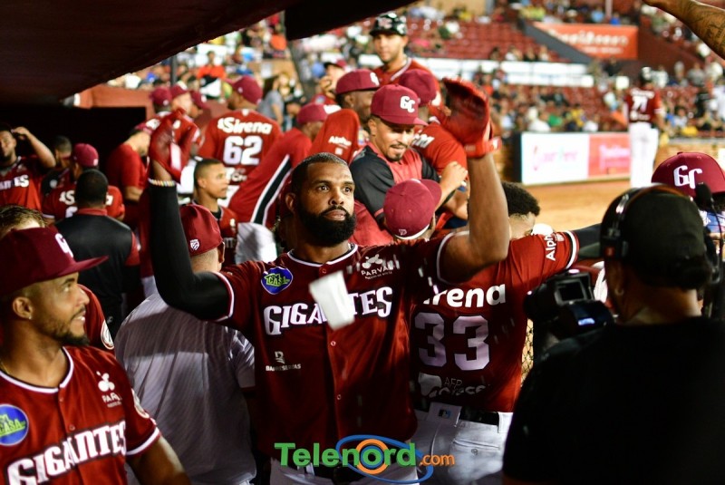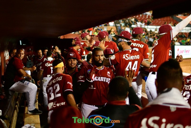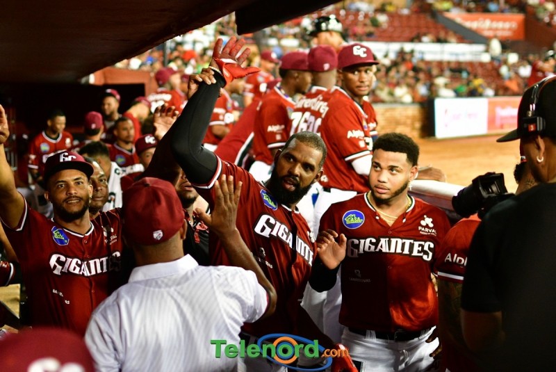 Los Gigantes se fueron arriba en el cierre de la primera entra anotando tres carreras luego de dos outs Oliver Dunn recibió transferencia, Deyvison de los Santos ligó sencillo al left, quienes avanzaron a tercera y segunda por wild pitch, Marcos Hernández remolcó a Dunn y de los Santos con doblete al prado derecho, y Carlos Peguero impulso a Hernández con metrallazo al jardín izquierdo,