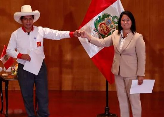 Perú cerró este domingo la contienda electoral más polarizada de su historia democrática con un resultado tan estrecho que no se puede aún proclamar un vencedor entre Pedro Castillo (izquierda) y Keiko Fujimori (derecha) que hace presagiar un largo y proceloso recuento que se puede prolongar varios días.