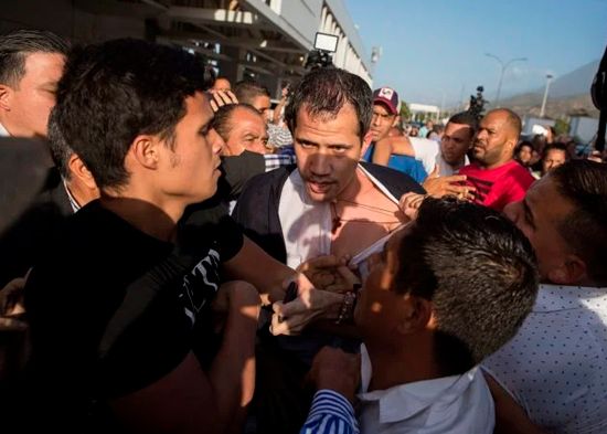 CARACAS, Venezuela.– El líder opositor Juan Guaidó, reconocido como presidente interino de Venezuela por más de 50 países, recibió este martes una paliza por parte de una muchedumbre oficialista que lo esperó en el Aeropuerto Internacional Simón Bolívar, que sirve a Caracas, cuando regresaba de una gira internacional de 23 días.
