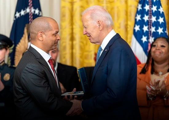 El seis de enero del 2021, el sargento de la policía de Washington, Aquilino Gonell, se enfrentó a una horda de seguidores del expresidente Donald Trump (2017-2021) que asaltó el Capitolio y por ello, exactamente dos años después, fue reconocido por el presidente Joe Biden con una “medalla al ciudadano” debido a su labor en “defensa de la democracia”.