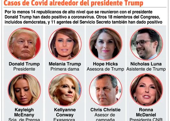 El jefe de Estado, quien el jueves pasado dio positivo por la enfermedad junto a su esposa, Melania Trump, mantiene una combinación de tratamientos potentes como el cóctel experimental de anticuerpos de la farmacéutica Regeneron que le fue suministrado el viernes; el antiviral Remdesivir y el esteroide dexametasona.