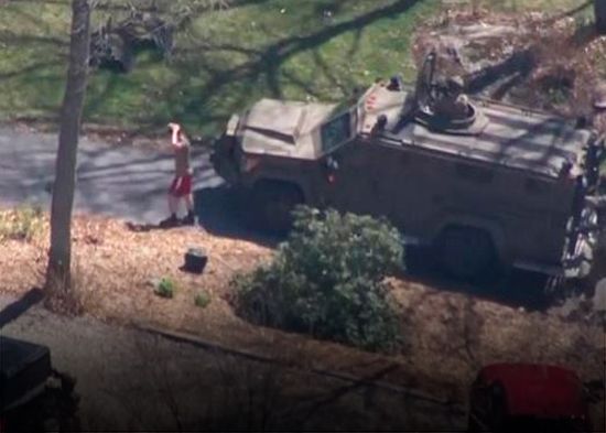 La televisión estadounidense difundió imágenes aéreas que mostraban al sospechoso, con pantalones cortos rojos y las manos detrás de la espalda, siendo colocado por agentes fuertemente armados en un vehículo sin identificación, en un área boscosa en North Dighton, en el estado de Massachusetts (noreste).