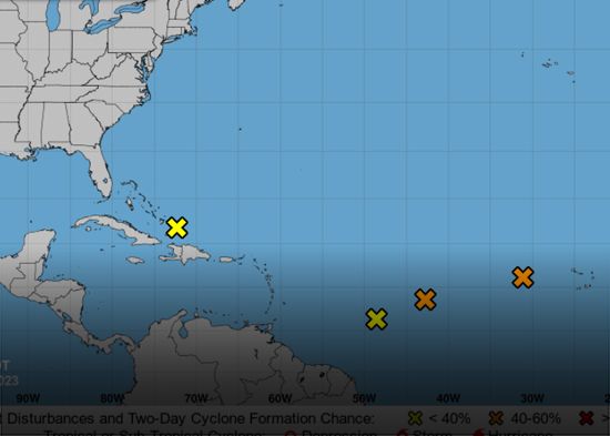 Los meteorólogos del NHC vigilan además una área de baja al este-sureste de las Antillas Menores que se mueve a unos 24 km/h con dirección noroeste, si bien por ahora presenta bajas posibilidades (30 %) de desarrollarse en un ciclón en las próximas 48 horas.