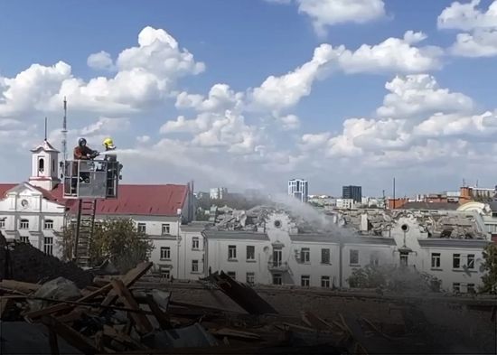 El ataque de este sábado impactó en pleno centro de la ciudad y causó destrozos en el mencionado teatro, así como en la Universidad, según informó el presidente del país, Volodímir Zelenski, a través de su cuenta en X -antes twitter-.
