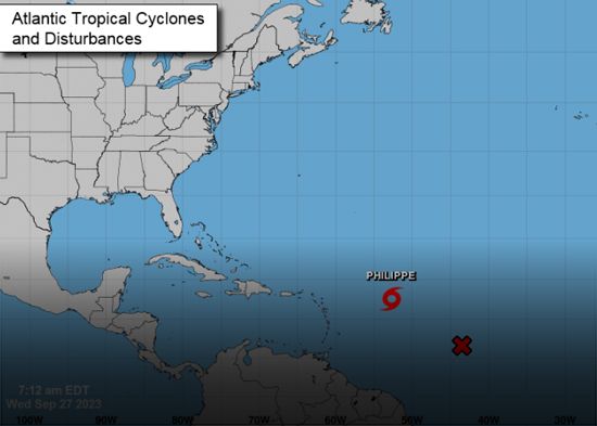 Según su informe de las 5 de la mañana, Philippe estaba ubicado cerca de la latitud 17,6 norte, longitud 52,7 oeste. Asimismo, el centro de la tormenta se está moviendo hacia el oeste aproximadamente a 19 km/h.