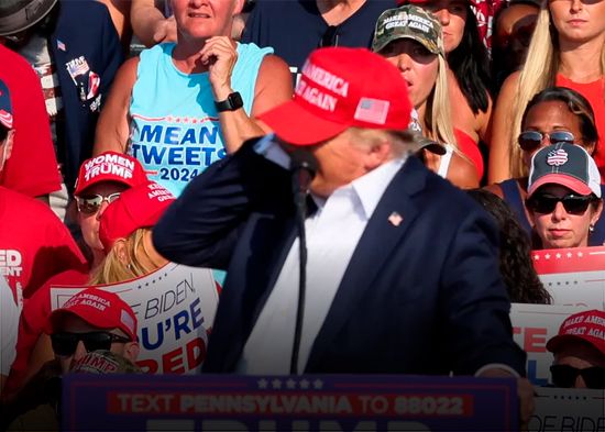 Mientras el exmandatario hablaba ante miles de seguidores en un actividad al aire libre, se escucharon estruendos. Rápidamente se le vio tocarse una oreja y agacharse.