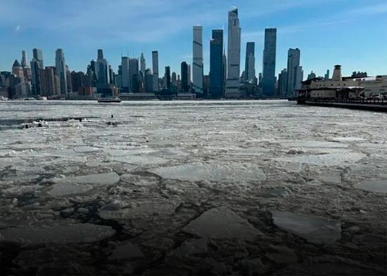 NUEVA YORK.- El caudaloso, profundo y navegable río Hudson en este estado sigue congelado debido al drástico descenso en las temperaturas, en múltiples ocasiones bajo 0º Fahrenheit.