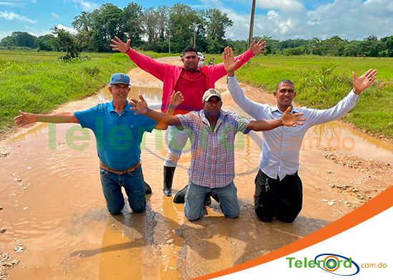 DUARTE.- Arrodillados en el lodo y profundos hoyos, productores arroceros de Villa Riva, solicitaron al presidente Luis Abinader, la construcción del tramo carretero que comunica este municipio con la Autopista del Nordeste, en el distrito municipal Cristo Rey de Guaraguao.
