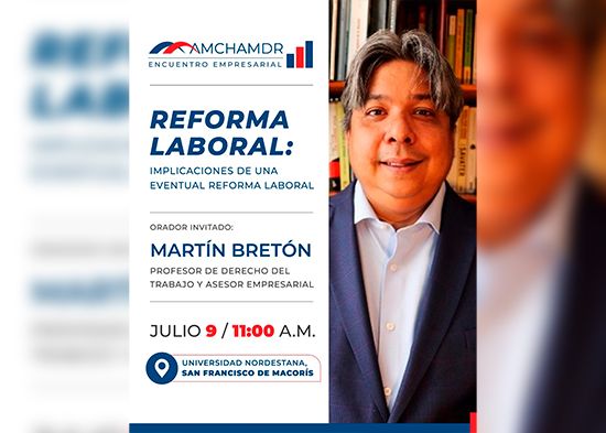 La Cámara Americana de Comercio de la República Dominicana (AMCHAMDR, por sus siglas en inglés) celebrará su próximo Encuentro Empresarial el martes 9 de julio, a las 11:00 de la mañana, en la Universidad Nordestana, en San Francisco de Macorís. El evento contará con la participación del jurista y asesor empresarial Martín Bretón, quien abordará el tema “Reforma Laboral: Implicaciones de una Eventual Reforma Laboral”, en el marco de los debates actuales sobre el futuro del Código de Trabajo de la República Dominicana.