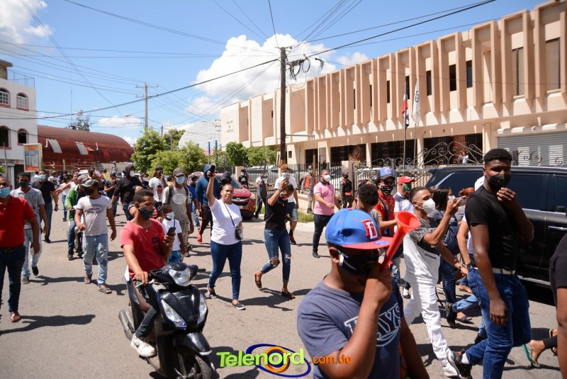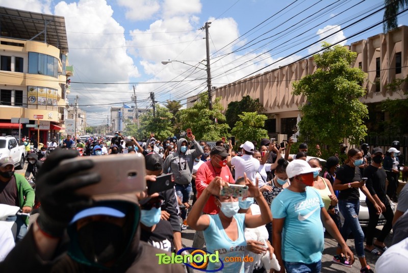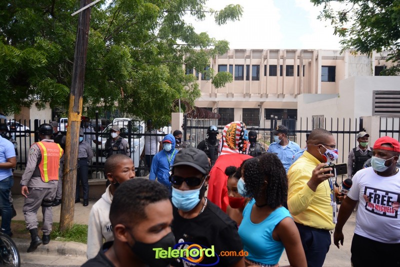 San Francisco De Macorís.- Cientos de personas se concentraron frente al Palacio de Justicia, para manifestarse en apoyo al artista urbano Miguel Ángel Valerio “Don Miguelo”, detenido desde el lunes 24 de agosto por la participación de menores de edad en videos.