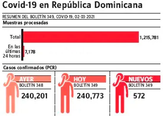 En las últimas 24 horas fueron notificados 572 nuevos contagios por covid-19, y en el mismo tiempo se reportaron 12 defunciones.