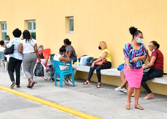 “Los banquitos son muy duros”, es el motivo por el cual Gloria y Marilenis Encarnación han tenido que cargar sus sillas plásticas desde Los Alcarrizos hasta el hospital Marcelino Vélez Santana, donde está ingresada su madre, afectada por el Covid-19.